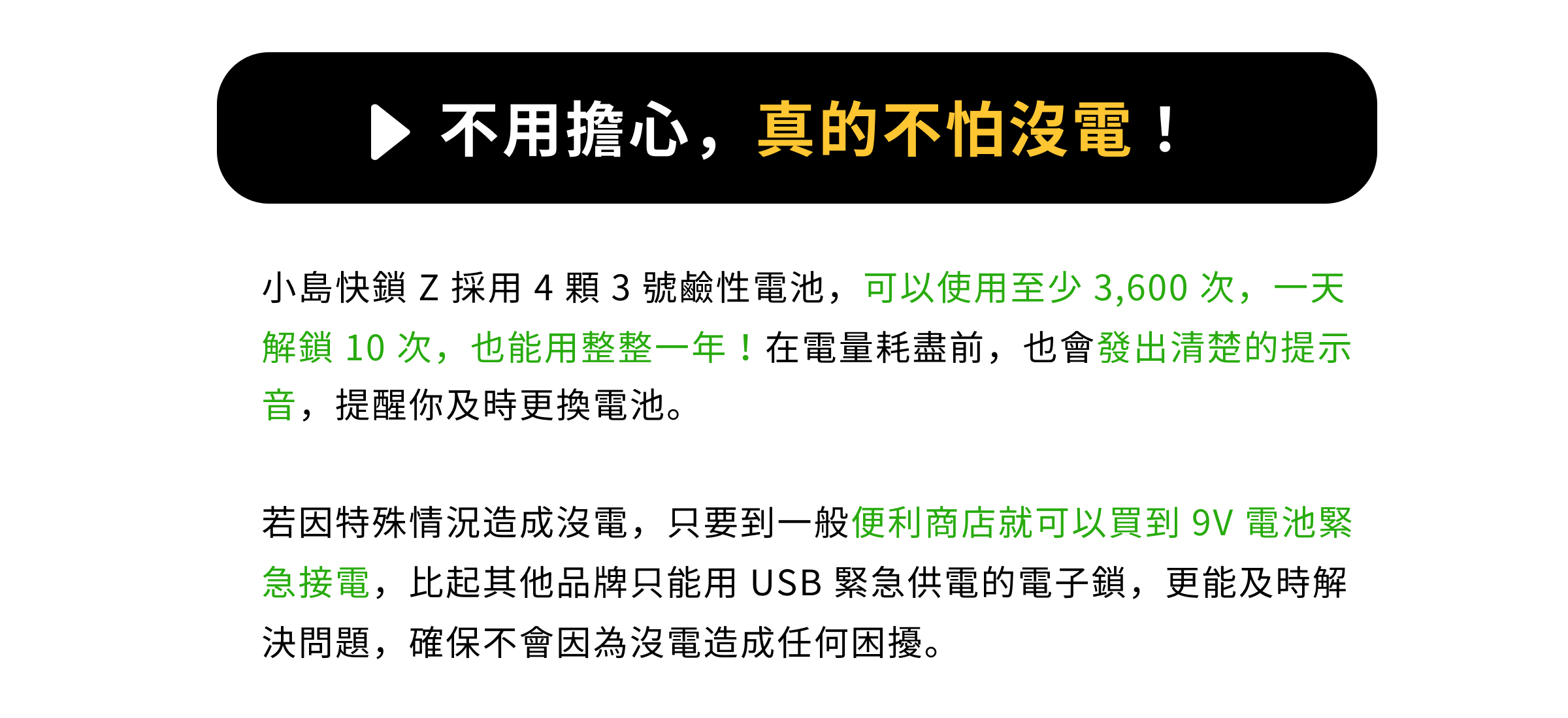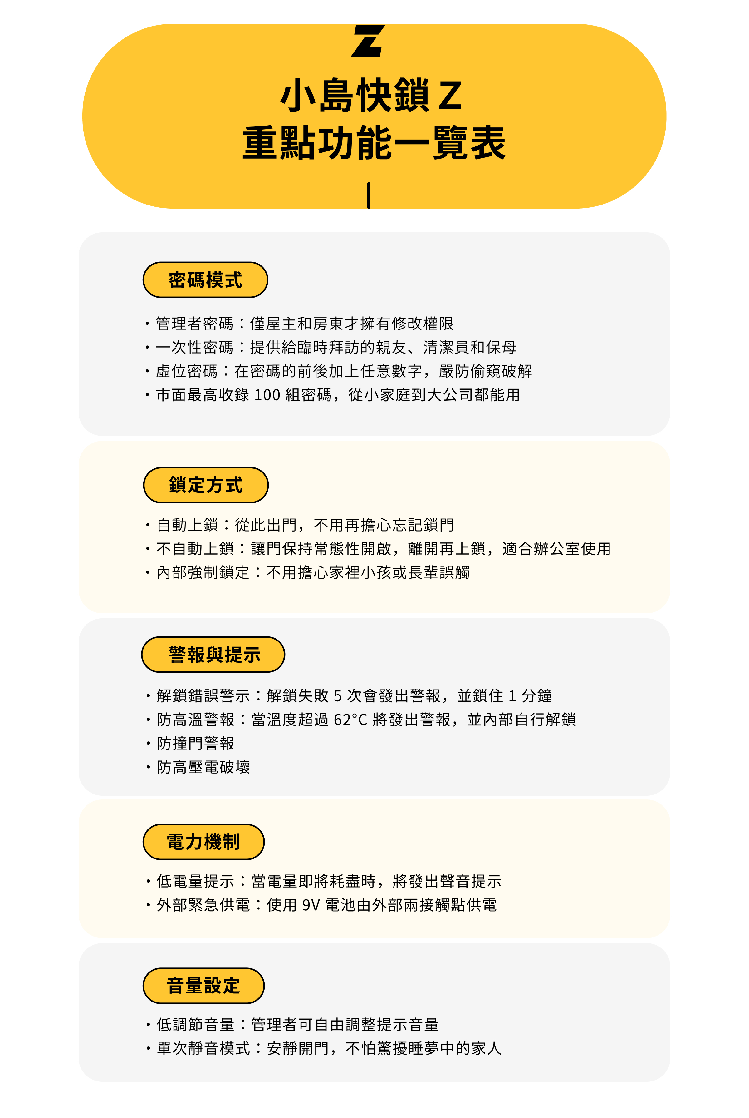 • 小島快鎖 Z 小組輔助鎖,享有一年保固
