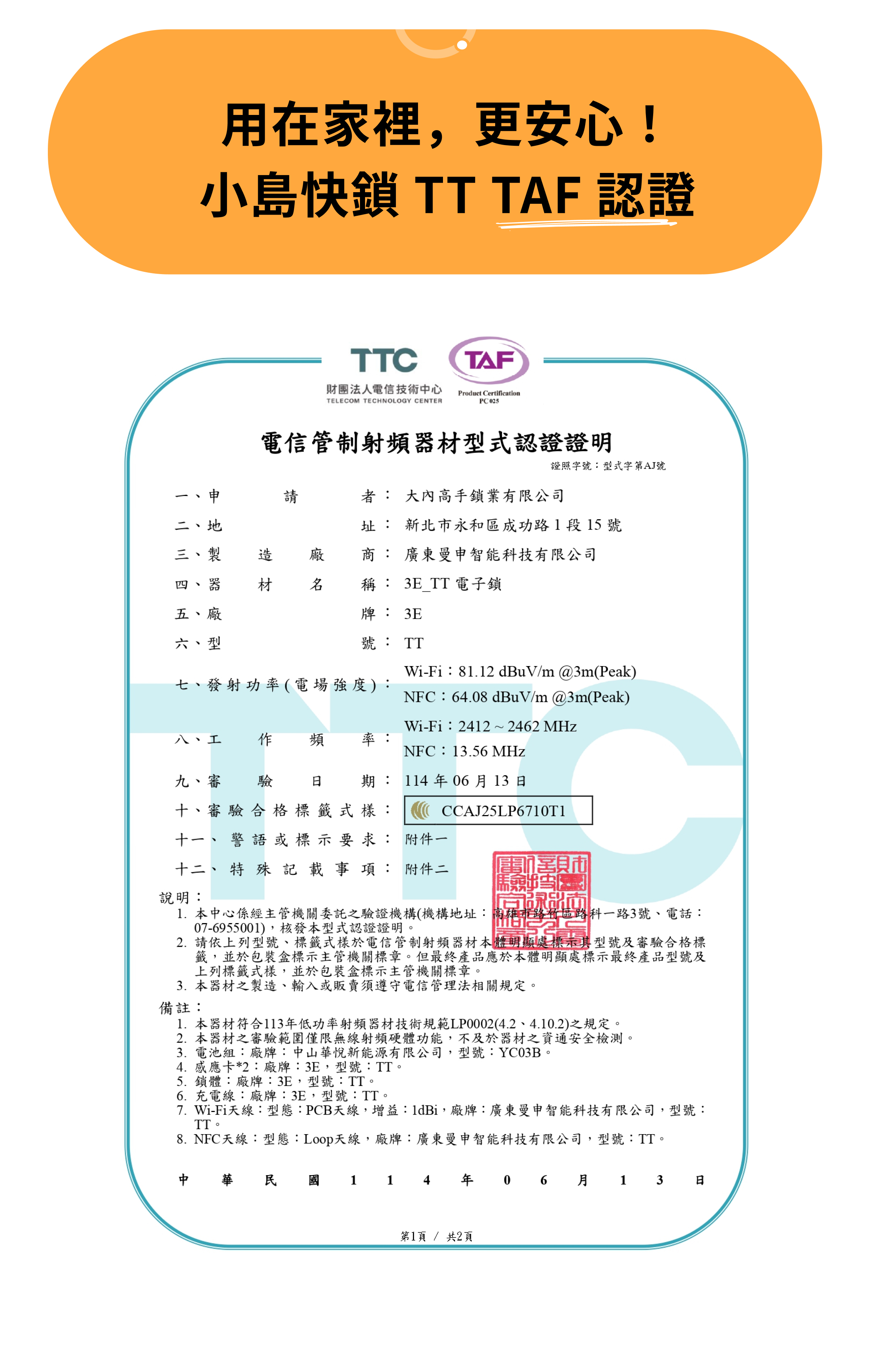 • 小島快鎖 TT 大組主鎖,享有兩年保固