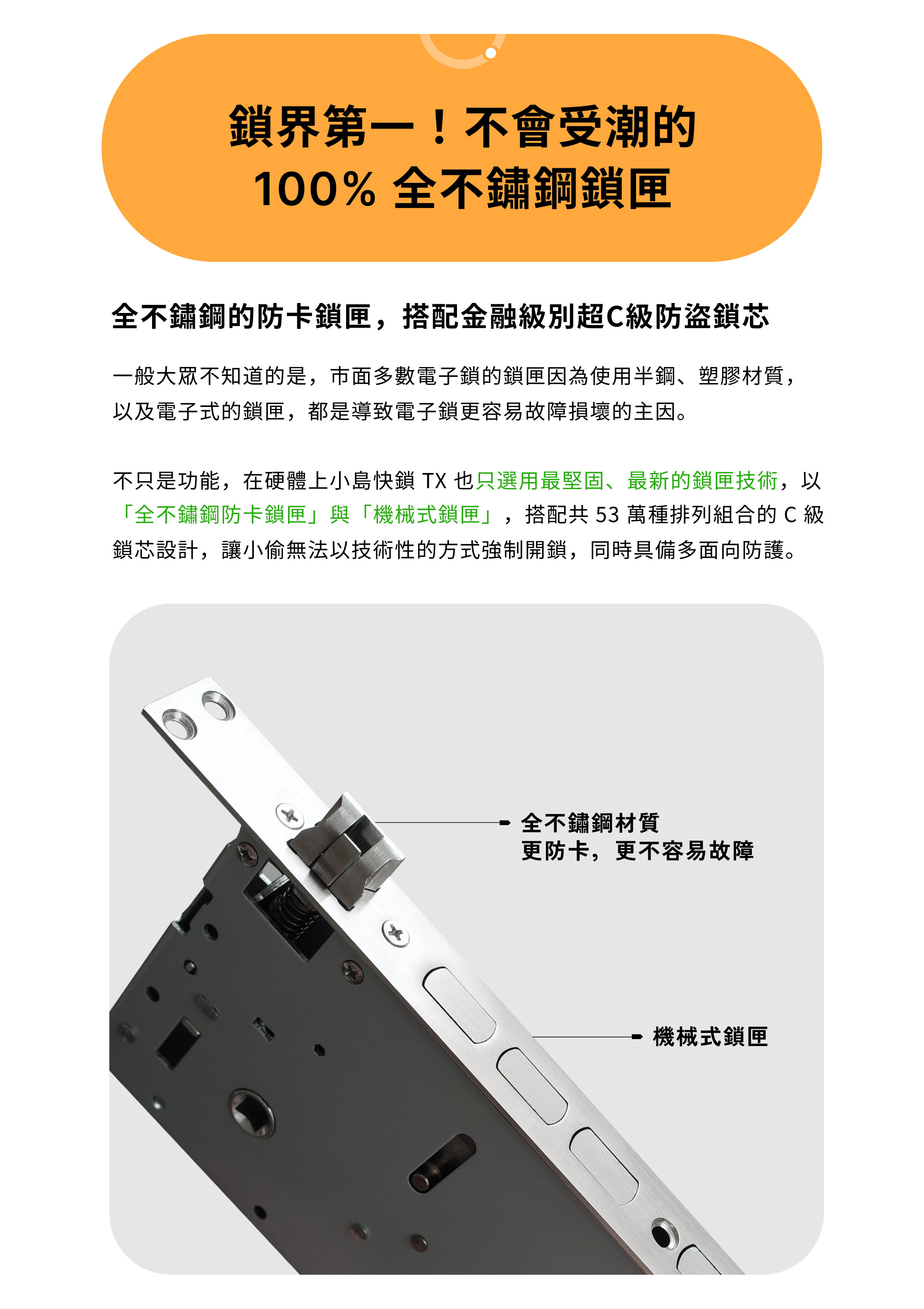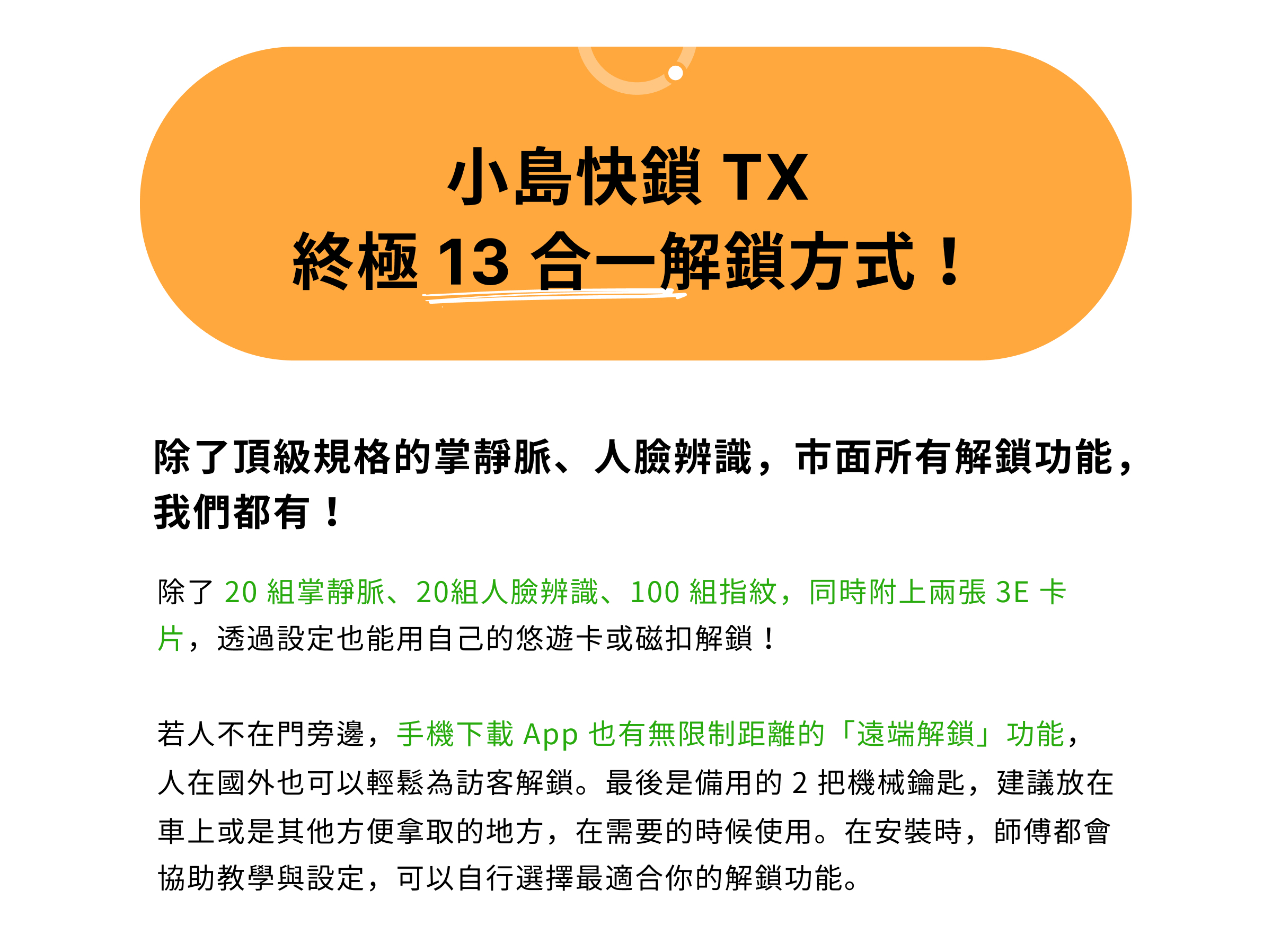 • 小島快鎖 TX 大組主鎖,享有兩年保固