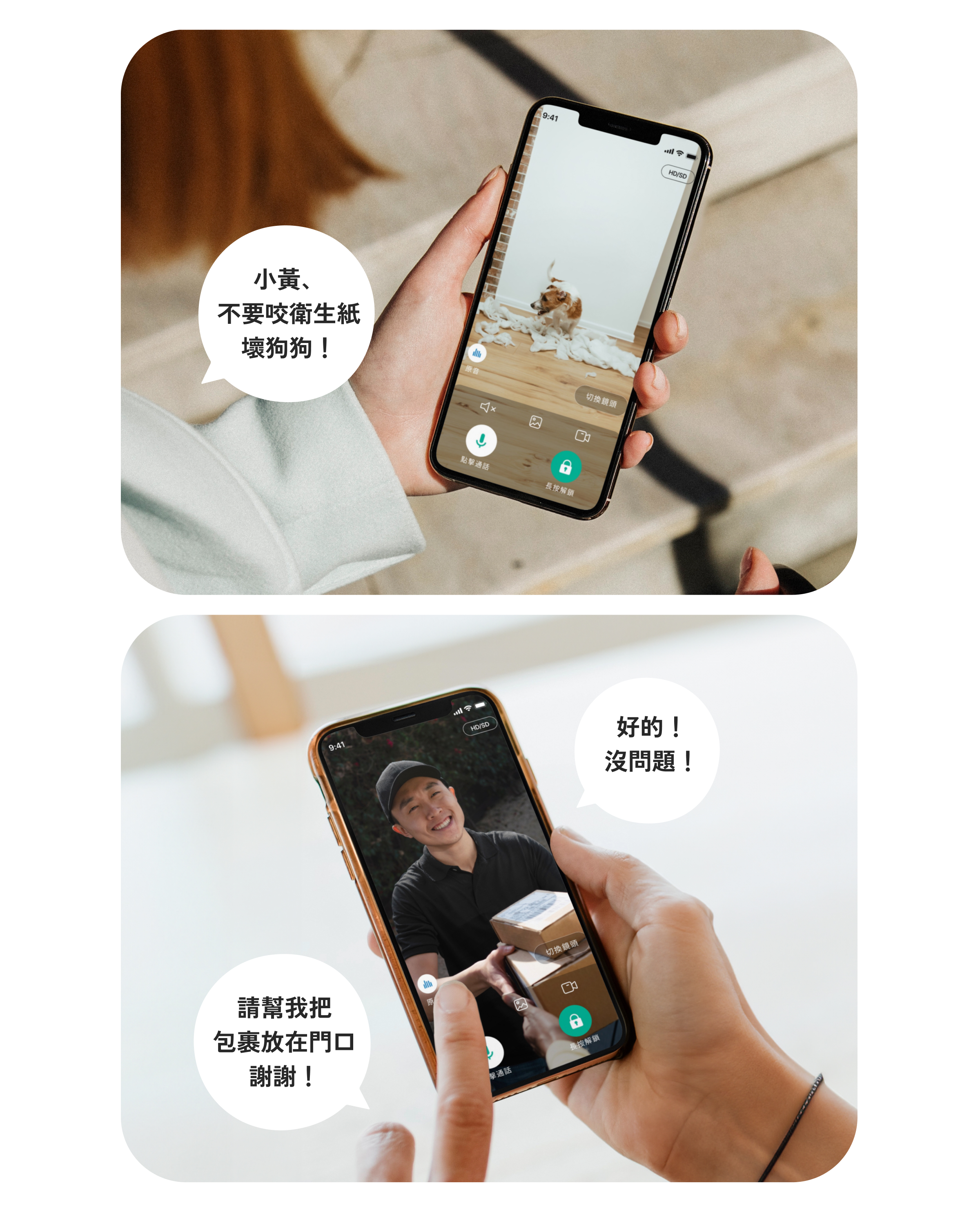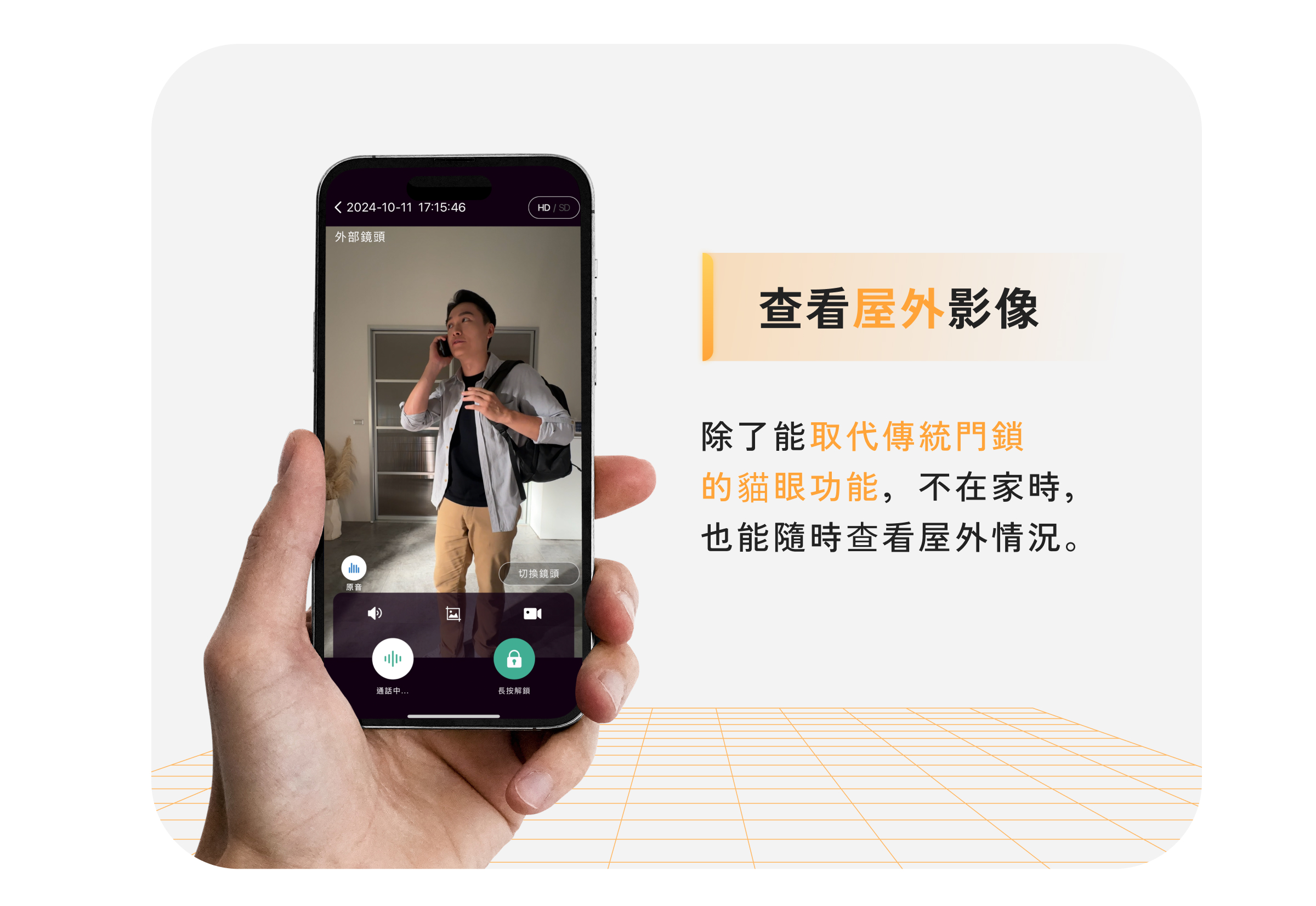 無時無刻,都可以用手機遠端查看家中門外與門內客廳